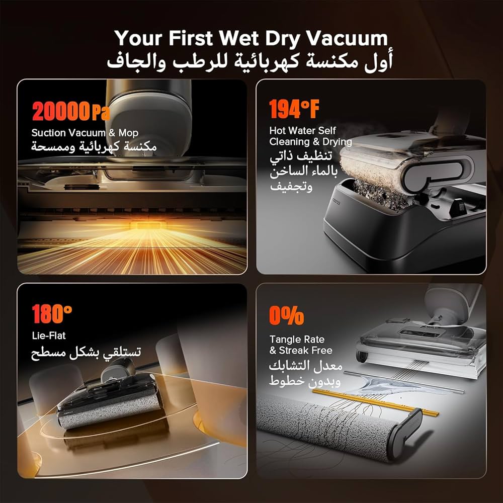 طراحی دراز کشیدن ۱۸۰ درجه: با طراحی دراز کشیدن ۱۸۰ درجه و تمیز کردن سه لبه، زیر مبلمان و گوشههای تنگ را به راحتی تمیز کنید. فرمان چرخشی ۷۰ درجه و چرخهای کمکی - همه در یک قاب سبک ۸.۸ پوندی. طراحی مخزن آب پایینی، وزن را برای سطحی صاف متعادل میکند. این دستگاه تمیزکننده کف سخت به راحتی به فضاهای پنهان نفوذ میکند و هیچ گرد و غبار یا رگهای از خود به جا نمیگذارد - هیچ قسمتی دست نخورده باقی نمیماند