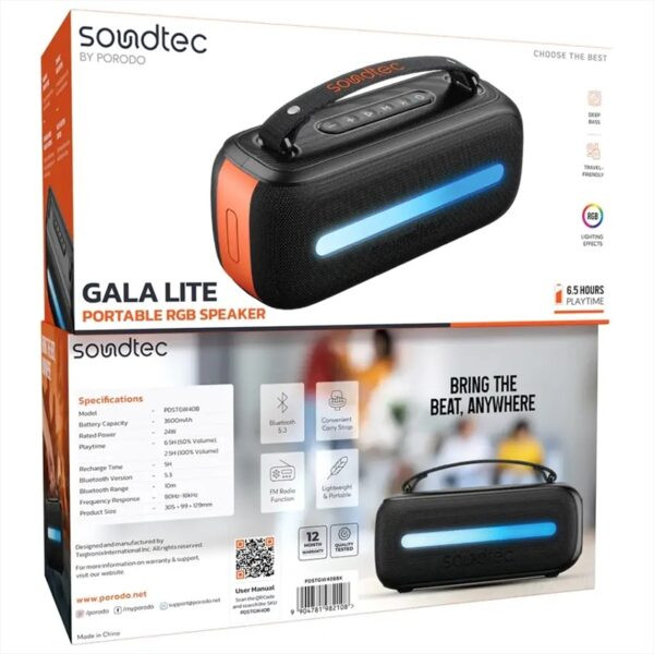 اسپیکر بلوتوثی 24 وات ساندتک پرودو Porodo Gala Lite Speaker PDSTGW40BBK